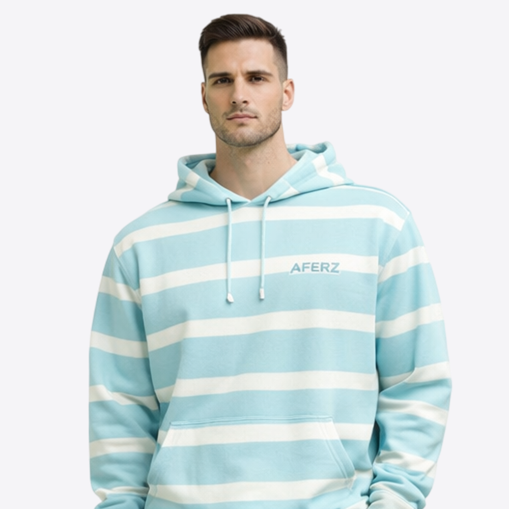 Striped Light Blue Hoodie – Casual Comfort Fit